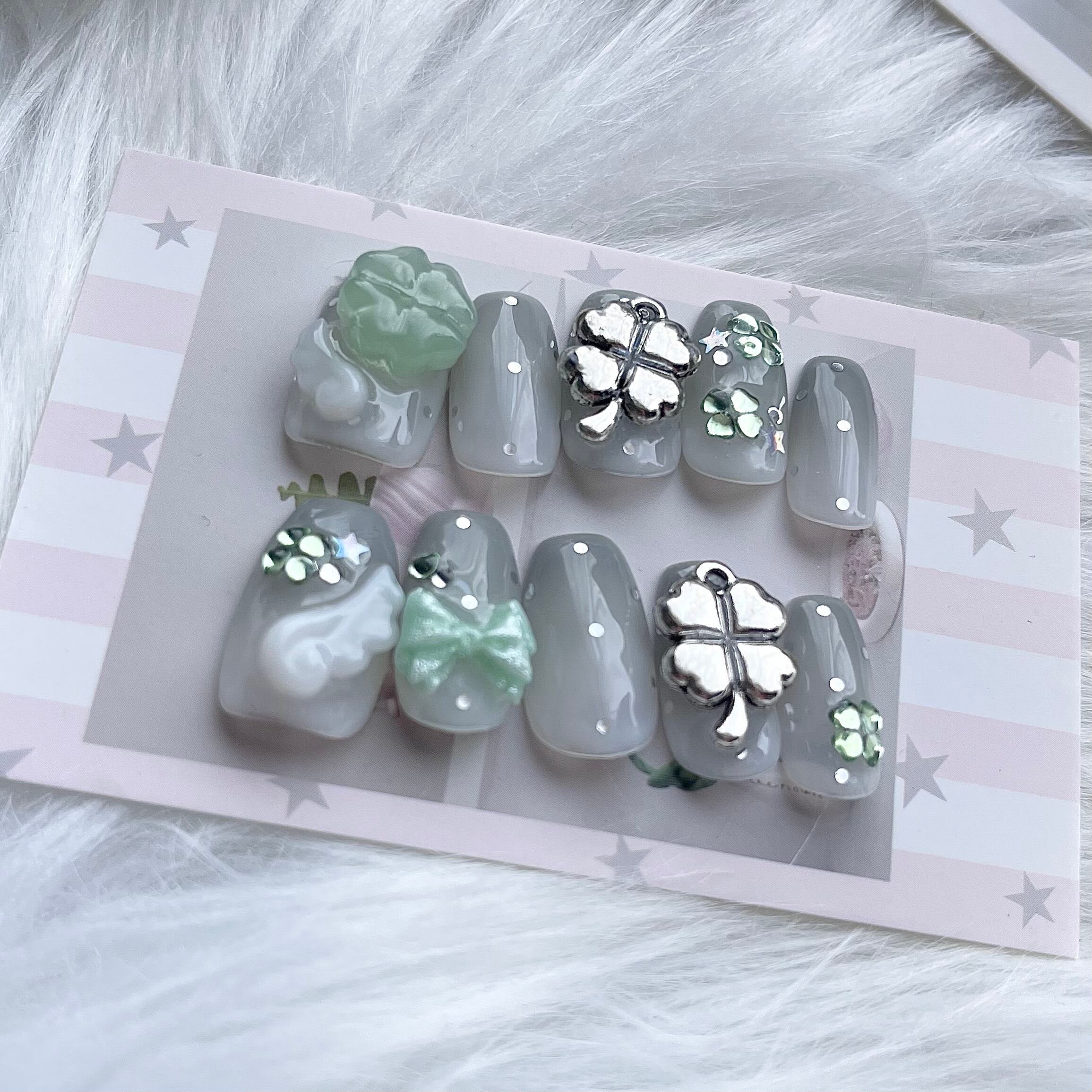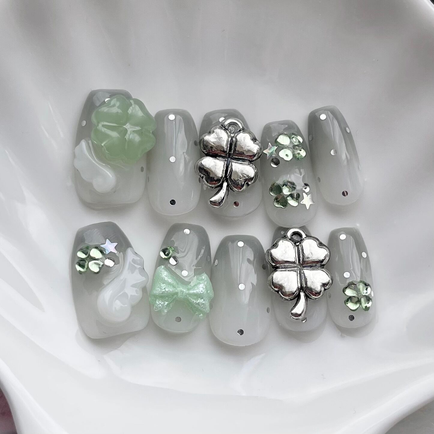 angel clover ✩.*˚ ネイルチップ,ウィッシュコアネイル ,エンジェルコア,ドットネイル クローバーネイル韓国ネイル 韓国風ネイル ネイルチップ ニュアンスネイル リボンネイル ピンクネイル チークネイル ハートネイル マグネットネイル ぷっくりネイル Y2Kネイル
