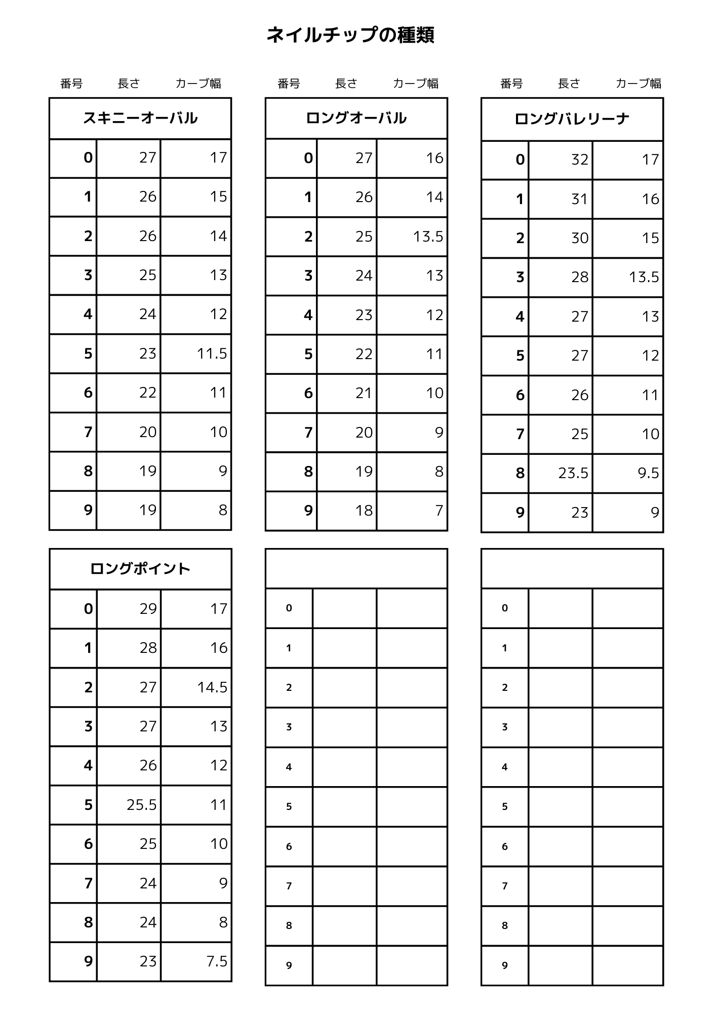 ・測定用チップ希望なしの方はサイズをご自身で測定し、チップの種類をご記入ください。