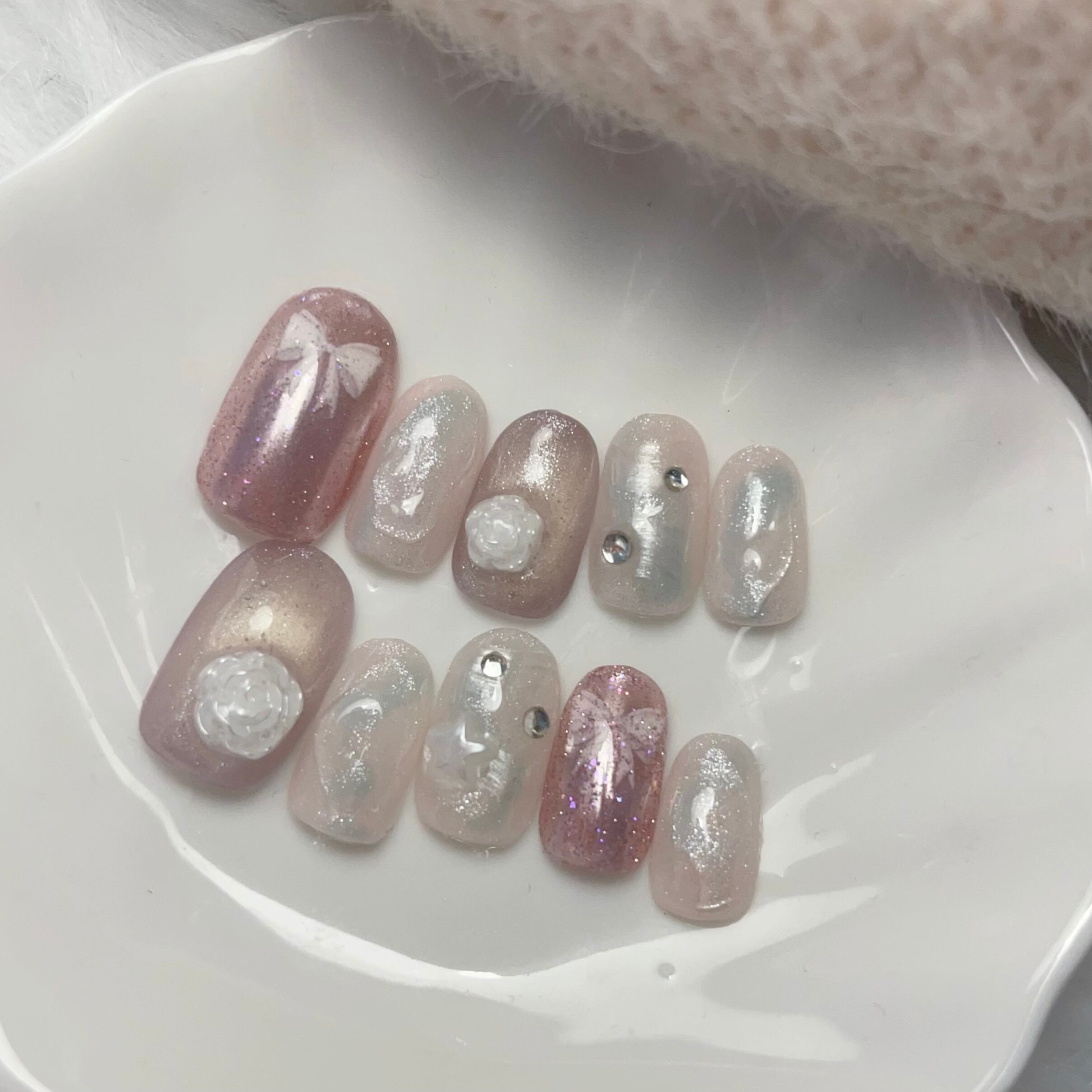 ネイルチップ ジェルネイル 韓国ネイル フレンチネイル ワンホンネイル y2kネイル リボンネイル グラデーションネイル ギャルネイル