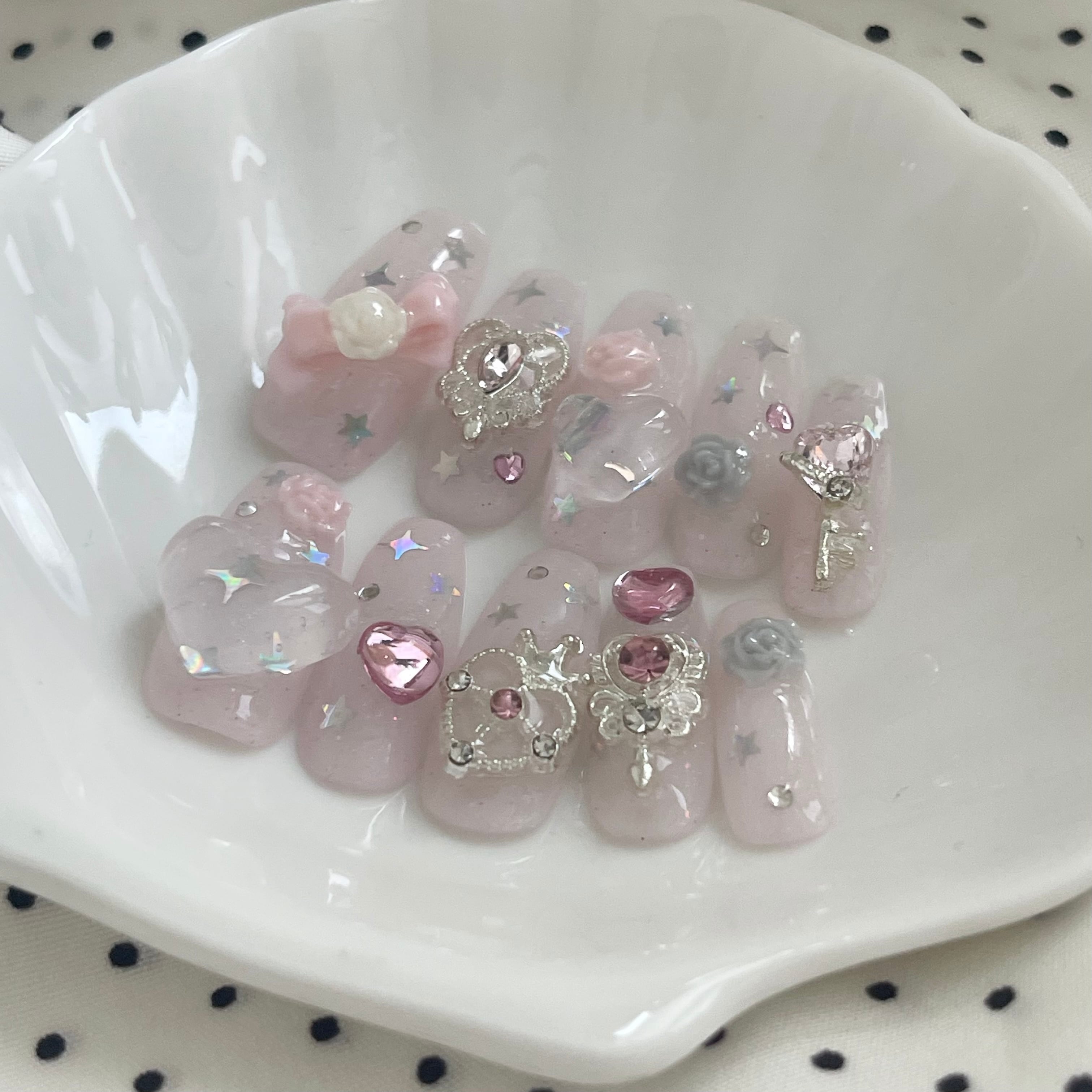 clear girly リボンネイル、ピンクネイル、ゴテゴテネイル、ガーリーネイル、薔薇ネイル